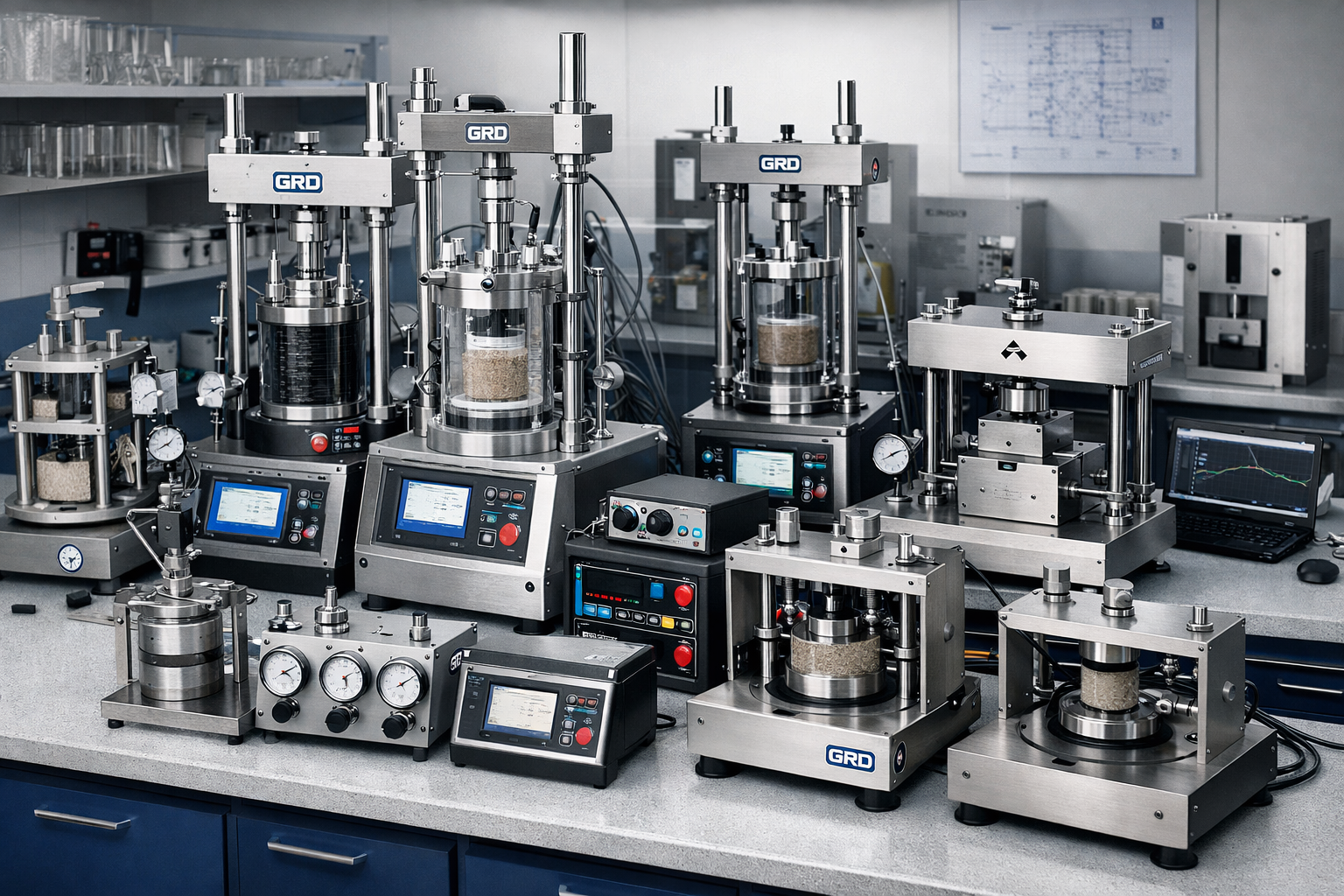Nossos equipamentos realizam ensaios Triaxial UU, CU, CD, compressão simples, adensamento, permeabilidade e cisalhamento direto.